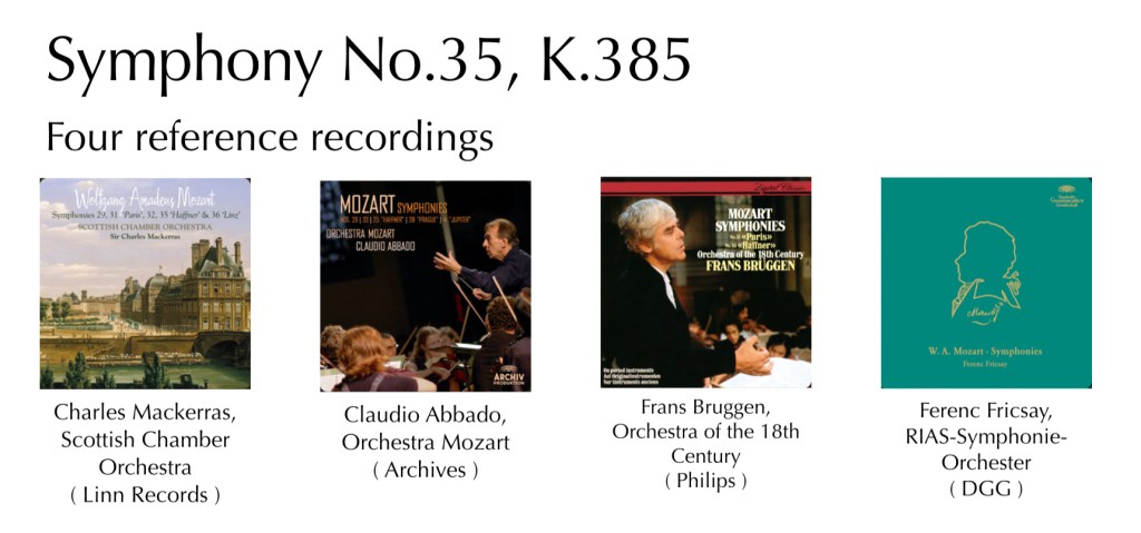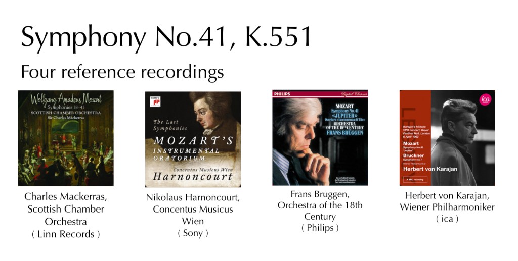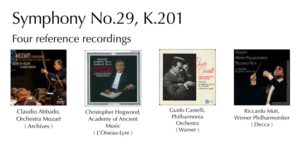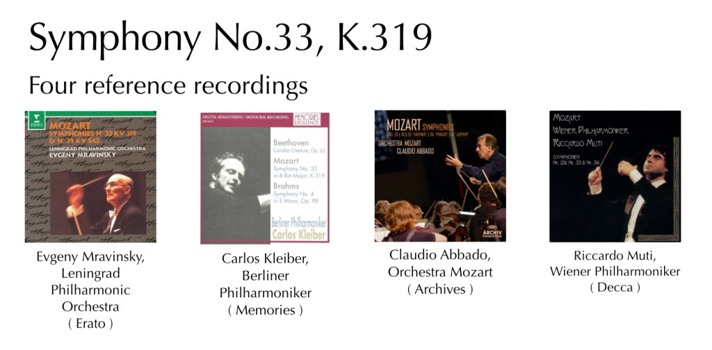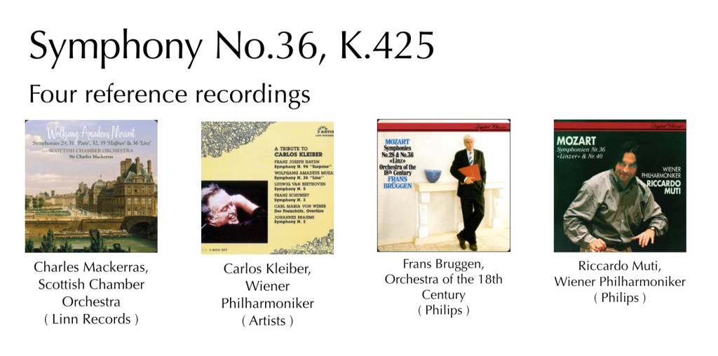 What is interesting to note, however, is that the contrast of performances on period instruments allows the conductors to conduct more slowly. It may seem paradoxical, but a smoother, less contrasting aesthetic demands more speed, otherwise the tension and melodic line are lost. What Bruno Walter, Wilhelm Furtwangler, Arturo Toscanini and Sergiu Celibidache have in common is that they all conduct Mozart’s symphonies at extremely brisk tempi, even though these conductors are not all necessarily fast in general.